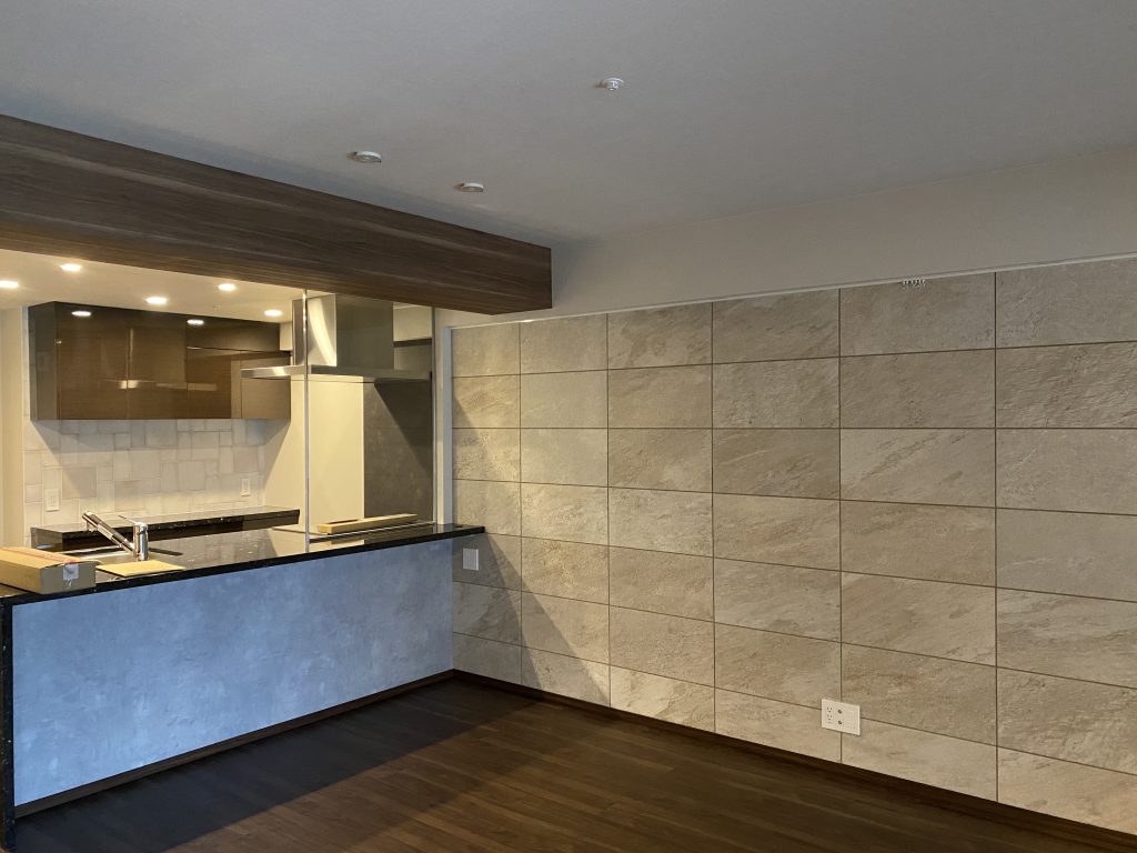 キッチンカウンター下も、始めはタイルのお話でしたが、リビングにタイル、キッチンバックにタイル、そしてカウンター下にもタイルとなると