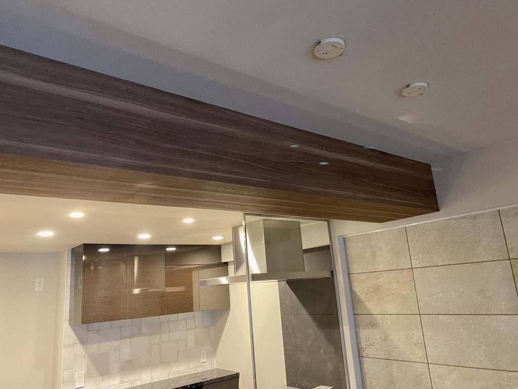 そして最後に、リビングの梁部分にウッド調クロスです。(サンゲツ:TH-32659)